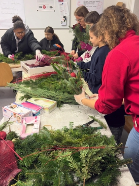 Mit sichtbarer Hingabe legten sich die Sieben- bis 14-jährigen Mitglieder des Jugendrotkreuzes ins Zeug. "Guck mal Mama, was ich alles reingepackt habe", zeigt Liyan seiner Mama Demet sein erstes Gesteck. Auch Mariella und Mama Nadine hatten große Freude und schafften einiges an Tannenzweige weg.