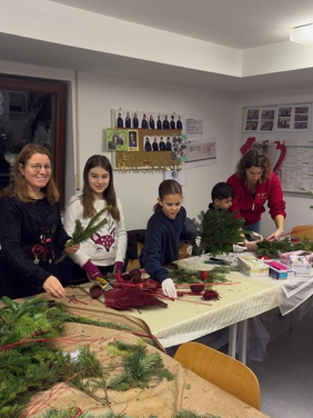 Die Weitinger Ortsvorsteherin hatte gleich zugesagt, als die Idee aufkam. Als Expertin stellte sie das Material zusammen und brachte große Eigenleistung auf. Einige Privatpersonen spendeten noch Reisig und so konnten die Kinder 60 Gestecke binden.