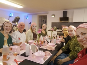 In verschiedenen Schritten konnten sich die Frauen das Gesicht eincremen, Masken auftragen und sich schlussendlich von Sirma massieren lassen. An diesem Beautytag erfuhren sie auch mehr über ihre Haut. Verpflegt wurden die acht Frauen mit Snacks, alkoholfreienm Sekt, Getränken und mit einer leckeren Pizza.